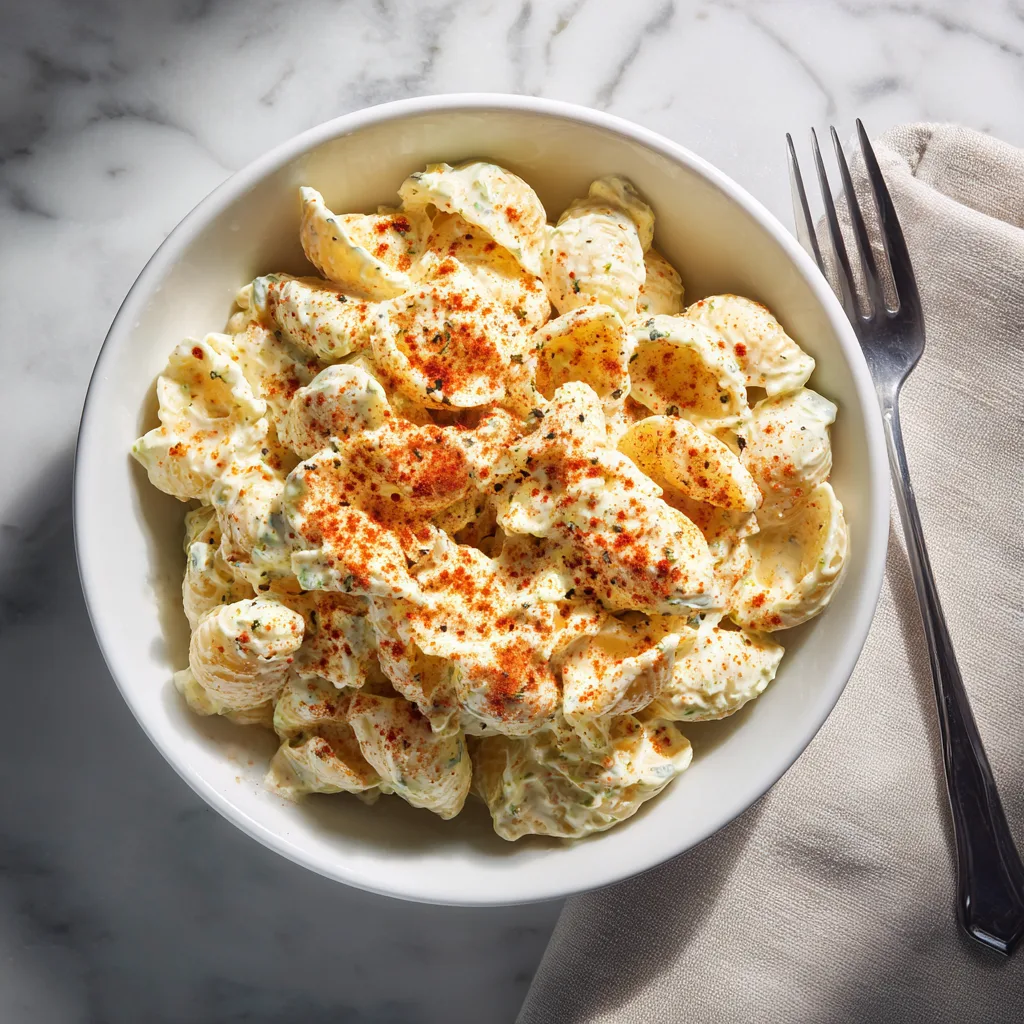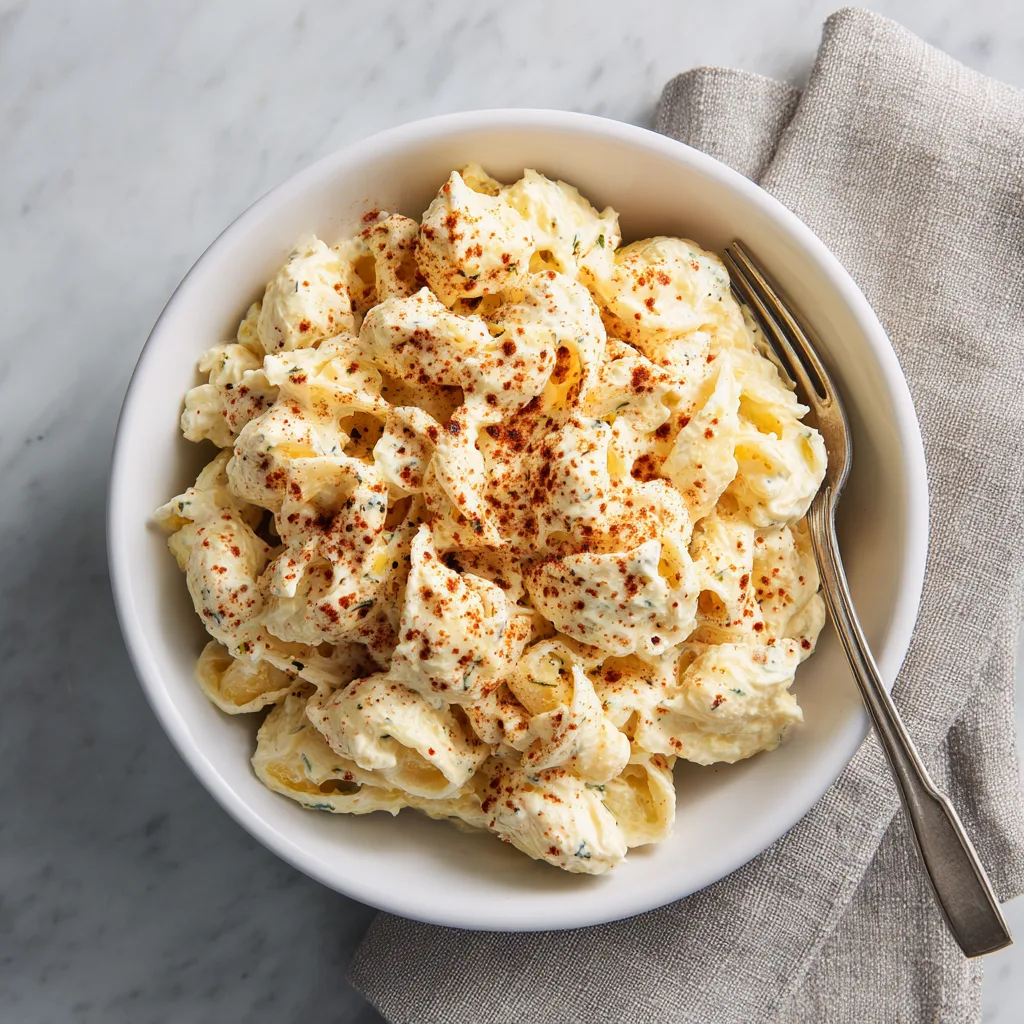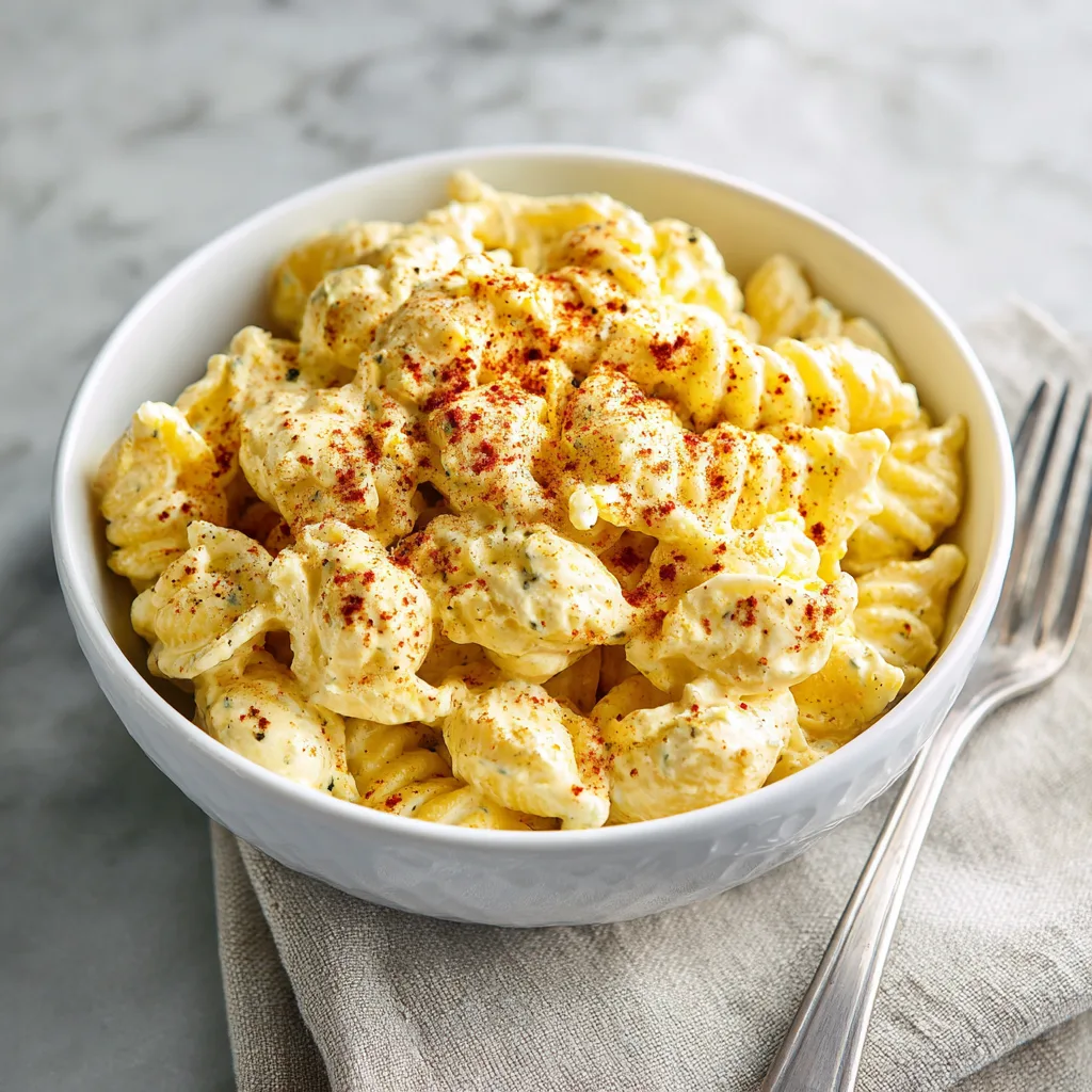 A creamy, tangy pasta salad that combines all the bold flavors of classic deviled eggs with hearty elbow macaroni, hard-boiled eggs, and a rich mustard-mayo dressing. Perfect for cookouts, potlucks, and make-ahead lunches.