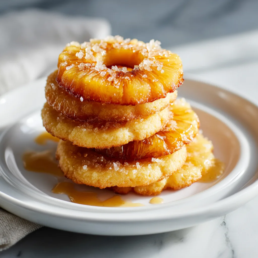 Cream Cheese Frosted Version: Once cooled, pipe a small rosette of lightly sweetened cream cheese frosting around the base of each pineapple ring for an extra-indulgent finish.