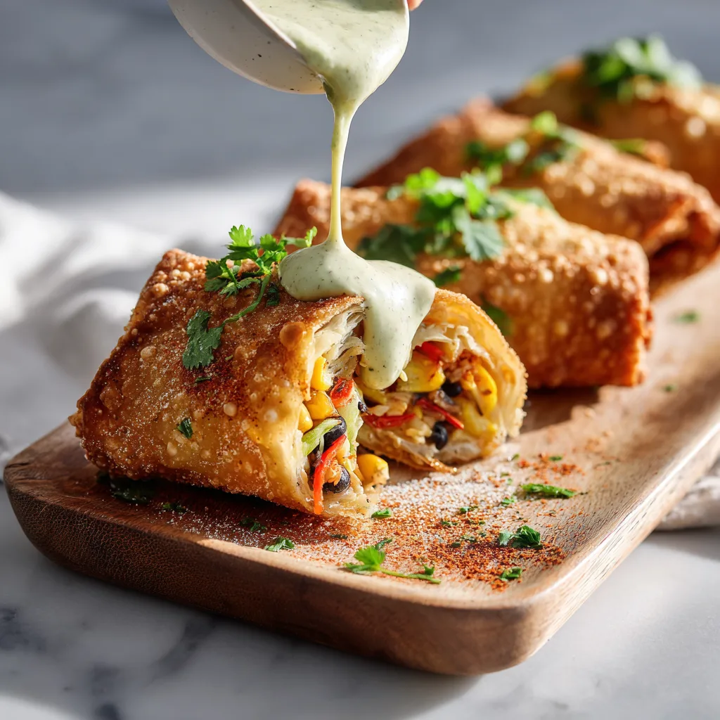 Southwest chicken egg rolls shine as a party appetizer, but they’re equally at home as a main course. Serve them alongside a fresh green salad, Mexican street corn, or a simple rice and bean bowl for a complete meal. For dipping, go beyond the avocado sauce and offer a side of salsa, chipotle ranch, or sour cream. If you’re entertaining, arrange them on a wooden board with the dipping sauce in the center — it makes for a gorgeous, Instagram-worthy spread that disappears faster than you’d expect.