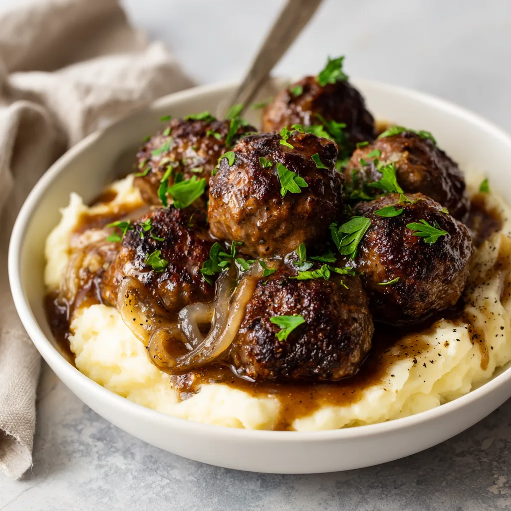 The Ultimate Comfort Food: Salisbury Steak Meatballs with Garlic Herb Mashed Potatoes