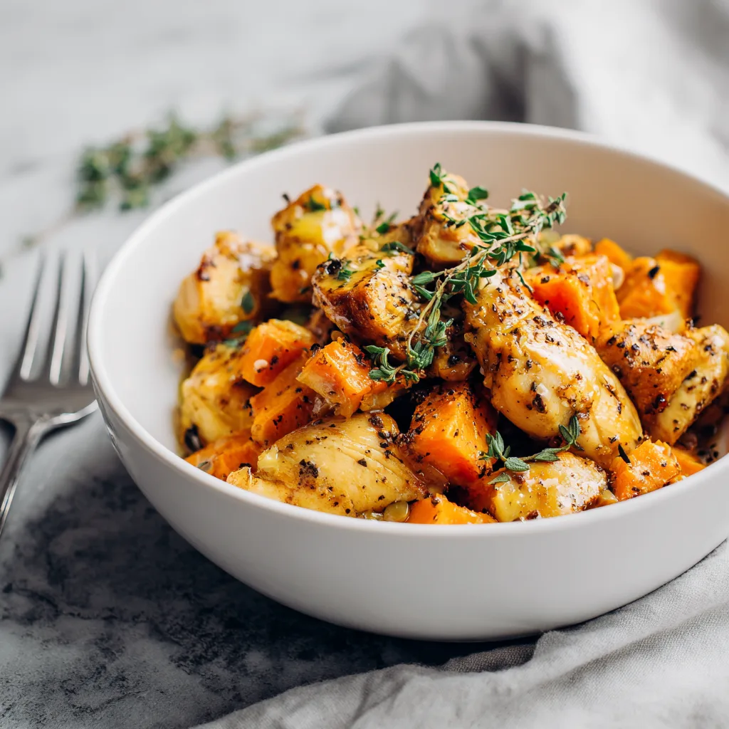 5. Assemble the Bowls Divide the fluffy quinoa among serving bowls. Top with a generous portion of roasted sweet potatoes and sliced chicken breast. Drizzle the Maple Dijon sauce generously over the chicken and veggies. Garnish with fresh chopped parsley or thyme and a crack of fresh black pepper.
