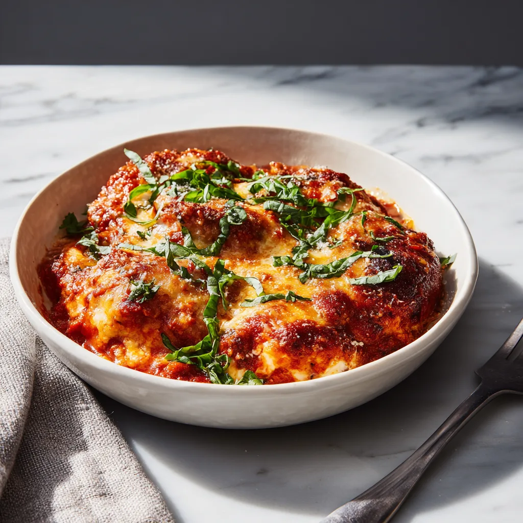 7. Garnish and Serve Remove from the oven and let it sit for 5 minutes. This allows the sauce to thicken slightly as it cools. Garnish with fresh chopped basil or parsley for a pop of color and freshness.